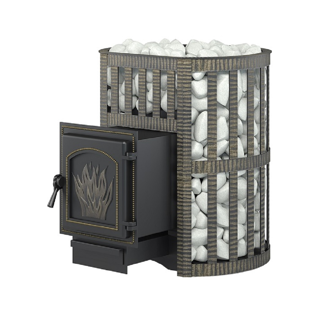 Печь для бани Везувий Легенда Ковка 22 дверка 271, 18 кВт, d115 мм, до 24 куб.м - это печь, которая имеет чугунную топку заключенную в сетчатый кожух, заполняемый большой массой камней. В конструкции данной печи предусмотрен топочный тоннель длиной 250 мм, при помощи которого печь топится из соседнего помещения, смежного с парильным. Печь имеет топку, которая состоит из 3-х элементов. На стыке между ними используется керамический шнур с рабочей температурой 1200°. Поэтому топка печи абсолютно герметична. Для фиксации деталей между собой применяется болтовое соединение, что даёт 100% гарантию безопасности при эксплуатации. Банная печь укомплектована чугунной герметичной дверцей с жаропрочным стеклом SHOT ROBAX. Конвекционно-вентилируемый кожух "Ковка" изготовлен из металлической текстурированной полосы покрашенной термостойкой краской и покрытая патиной Бронза.