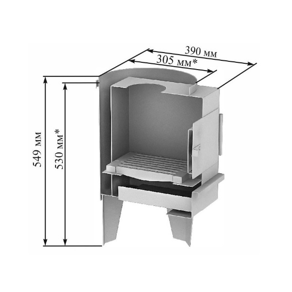 Топка состоит из камеры сгорания, чугунного колосника, дверцы с отражателем и зольниковой коробки.