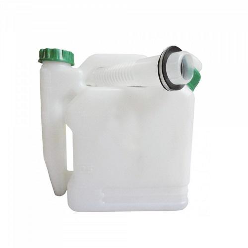 Предназначена для смешивания масла с бензином и дальнейшего его использования. Оснащена дозатором, в который заливается необходимое количество масла в соответствии с инструкцией для вашей бензотехники. В саму канистру заливается бензин и все тщательно перемешивается. Носик для удобной заливки поставляется в комплекте.