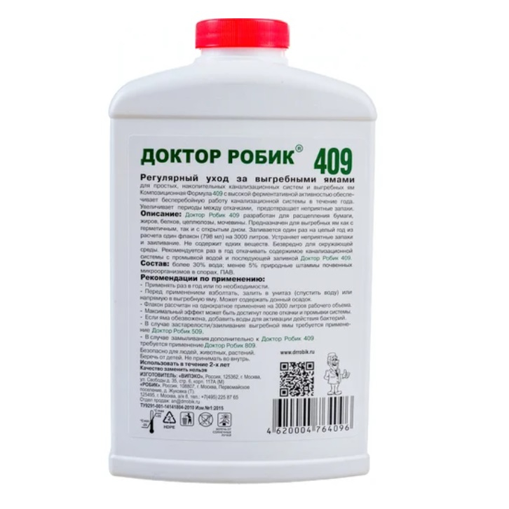 Описание средства по уходу за выгребной ямой Доктор Робик №409