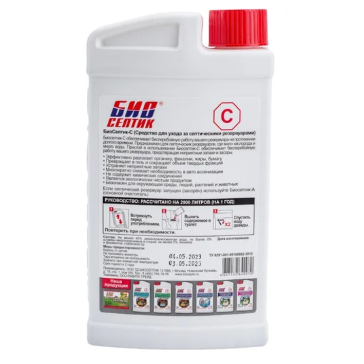 - Средство БИО-СЕПТИК "С" для ухода за септическими резервуарами 960мл