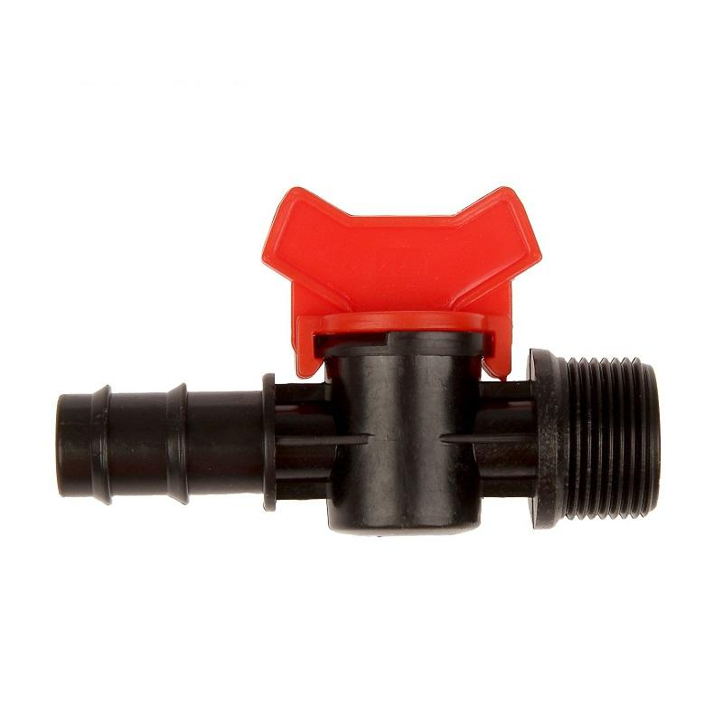 Пластиковый кран для подключения капельной ленты к резьбовому соединению 1/2".