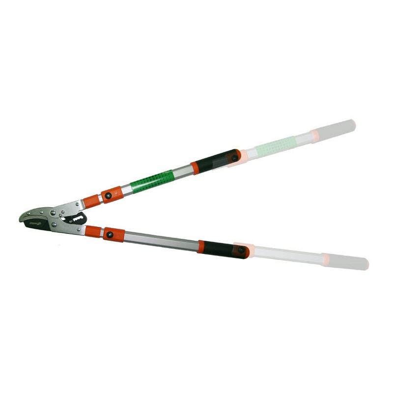 Сучкорез телескопический SKRAB 28040 с алюминиевыми ручками усиленного профиля, силовой, двухрычажный, с трещеточным механизмом предназначен для обрезки сучьев диаметром до 38 мм, обеспечивает легкий срез удаленных веток. Телескопические ручки раздвигаются на 320 мм (максимальная длина изделия - 950 мм). Закаленные лезвия изготовлены из высокоуглеродистой стали SK5, имеют продолжительный срок службы и защиту от коррозии, легко очищаются. Покрытая медью регулируемая упорная пластина и храповый механизм обеспечивают легкость реза. Прочные ручки снабжены эргономичными мягкими рукоятками.