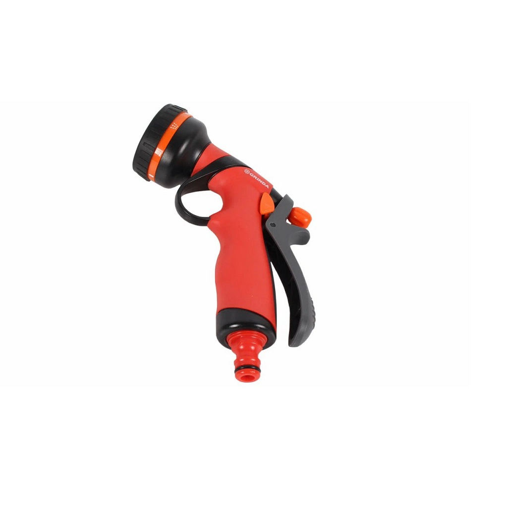 Пистолет-распылитель Гринда предоставляет возможность выбора одного из 8 режимов распыления путем вращение специального регулятора над курком: жесткая струя, конус, слабая струя, центр, плоская струя, душ, аэрирование, вертикальный полив.