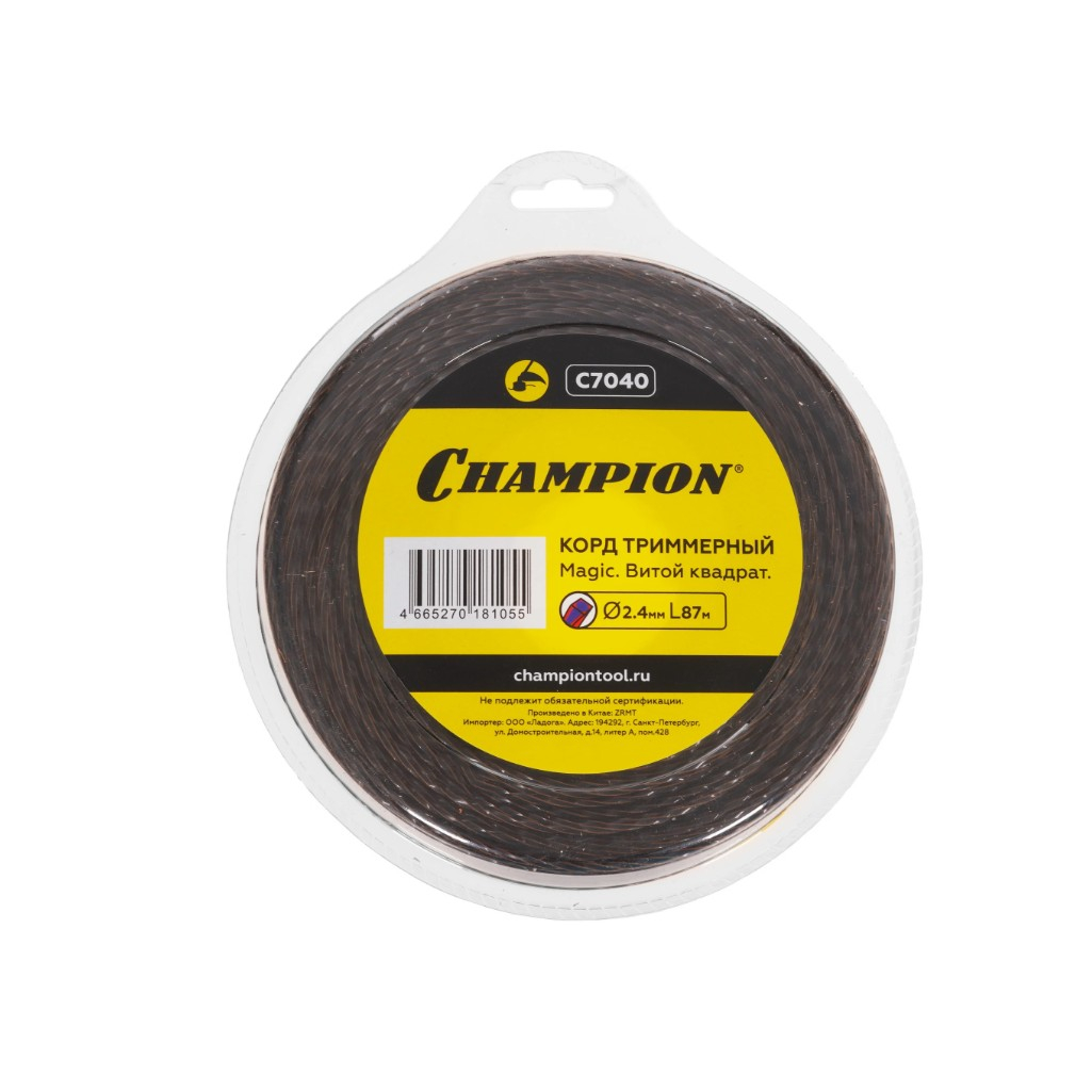 Леска для триммера Champion C7040, диаметр 2.4 мм, длина 87 м, квадрат
