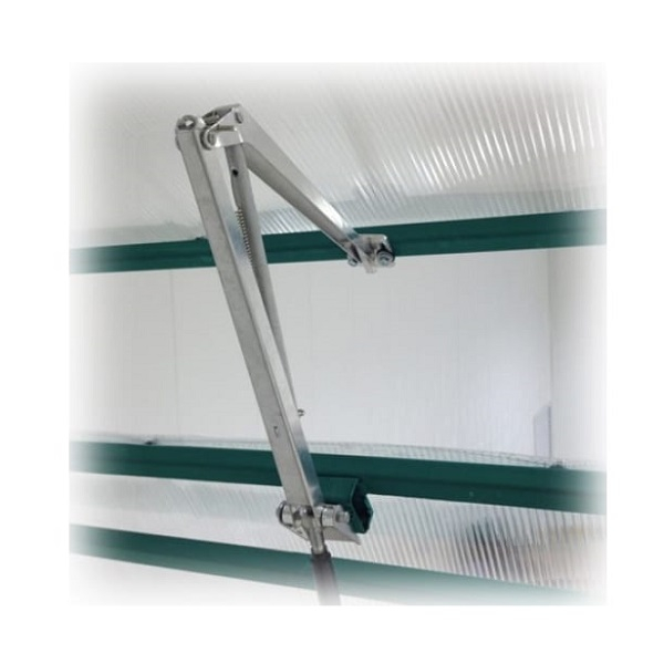 Работа автомата основана на принципе терма-расширения жидкости. Чем больше температура окружающего воздуха, тем больше происходит расширение жидкости в цилиндре. Температура становится меньше: жидкость уменьшается в объёме. Благодаря этому простому принципу поршень открывает и закрывает форточку, тем самым создавая комфортный микроклимат в помещении. Очень актуально использовать эту систему для проветривания в теплице. Это устройство универсально, установить его можно и в дверную форточку, а также и в дополнительную, расположенную в крыше, а конструкция теплицы может быть любой модели. Легко вращая цилиндр по резьбе, вы можете отрегулировать момент открытия при достижении нужной температуры.