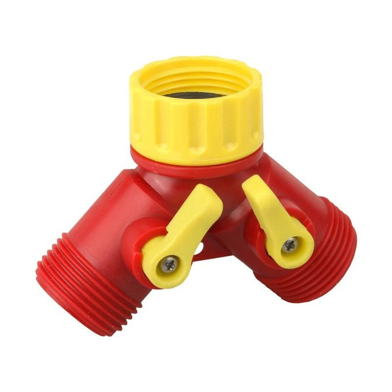 Разветвляет поток воды в кране для одновременного полива по нескольким линиям. Присоединяется к крану с наружной резьбой G 3/4" и шлангам через соединители. При помощи кранов давление воды в линиях можно регулировать ручными переключателями. Для герметичности соединения модель комплектуется резиновыми уплотнителями в виде колец, выдерживающих тепловые и химические воздействия.