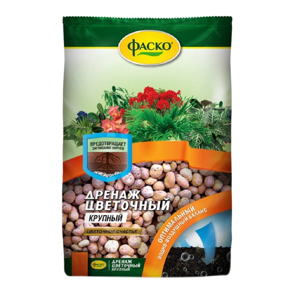 Дренаж Фаско Крупный цветочный Цветочное счастье, предотвращает загнивание корней, 1 л - это натуральный легкий и стерильный материал необходимый при выращивании цветочно-декоративных растений в комнатных условиях для поддержания комфортного водно-воздушного режима. Применяется для всех видов комнатных растений (диффенбахий, кротонов, монстер, драцен, фатсий, юкк, кордилин, бересклета, марант, пальм, фикусов, филодендронов, сингониумов, панданусов, циперуса, хлорофитумов, традесканций, сциндапсусов, плющей, шефлеры, гераней, антуриума, гибискуса, фуксии, бальзамина, амариллиса, жасмина, пассифлоры, калл, спатифиллума, цикломенов, пуансеттии, хризантемы, пахистахиса, абутилона, олеандра, примулы, афеландра, бегоний и др.)