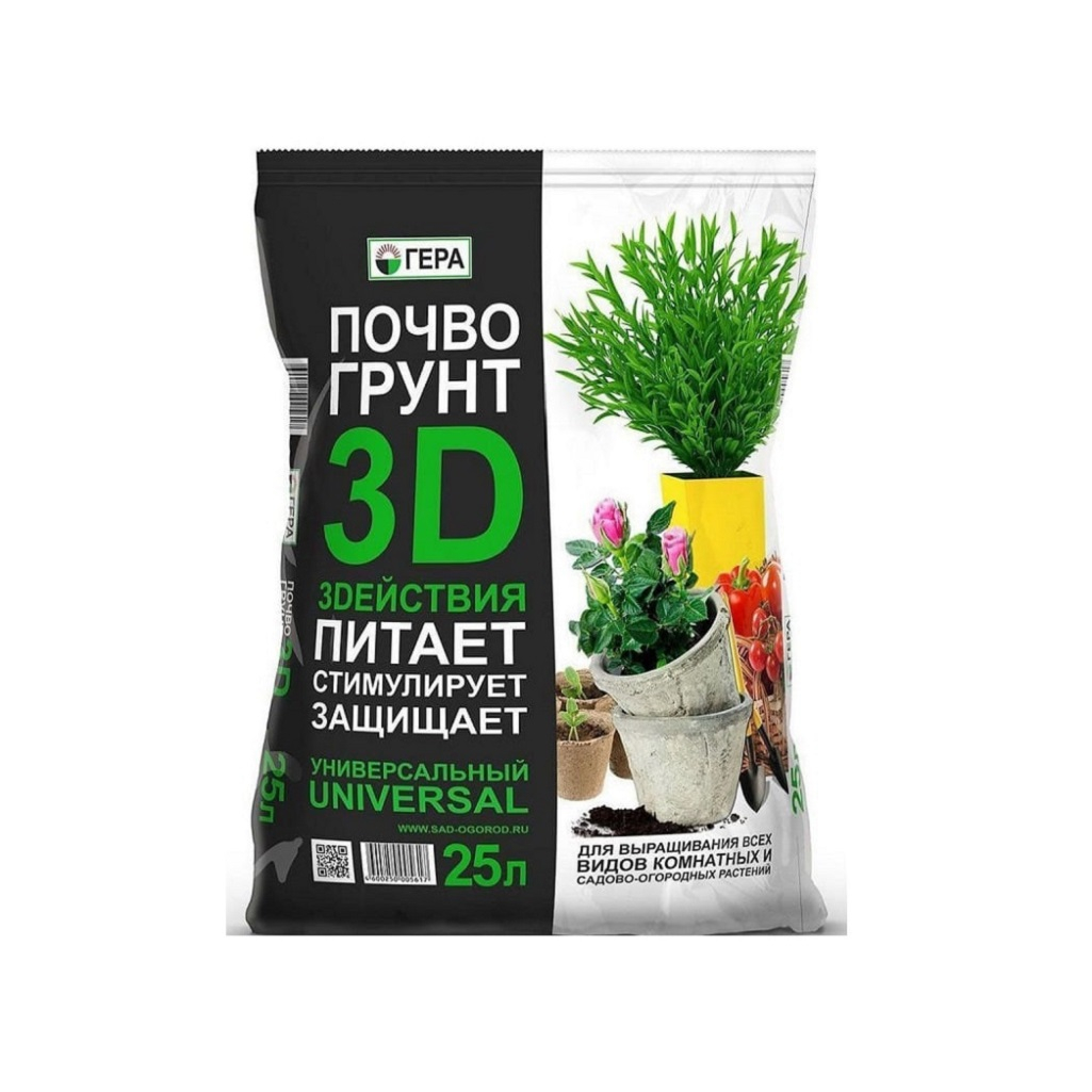 - Почвогрунт ГЕРА 3D+ универсальный 25л