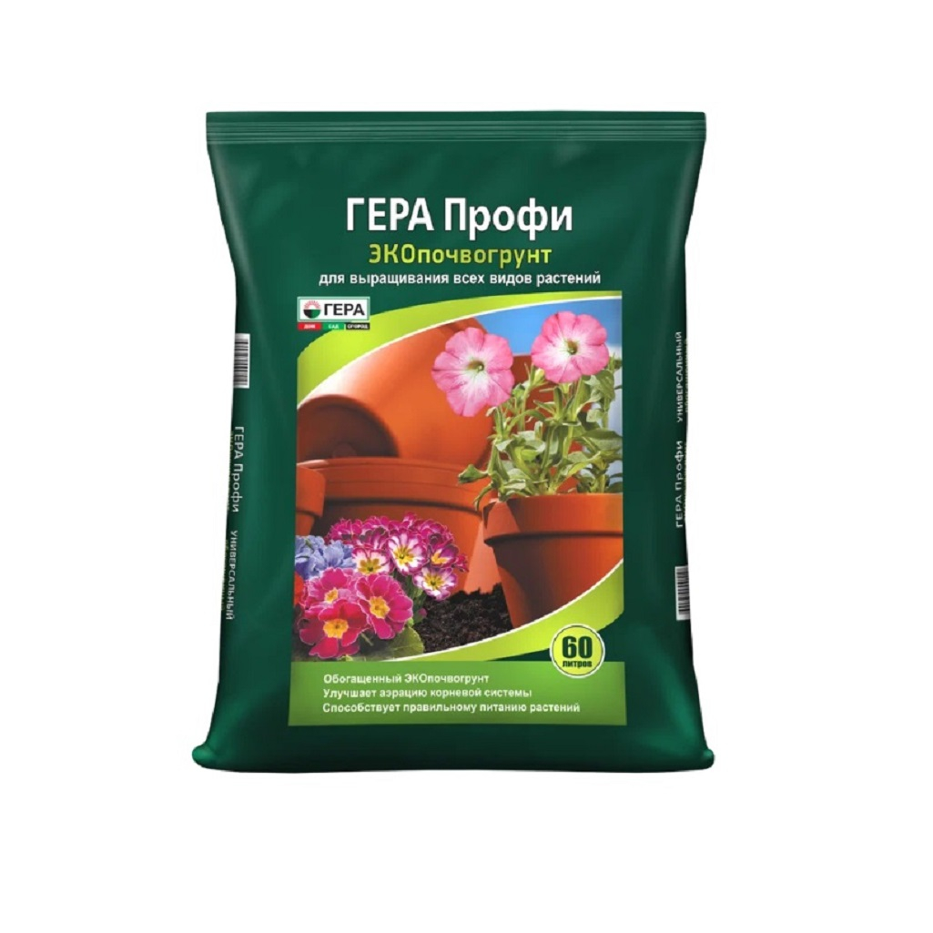 Экопочвогрунт Гера Профи универсальный 60 л предназначен для выращивания всех видов растений. Это полностью готовый к применению состав. Экопочвогрунт применяется в качестве готового питательного грунта при частичной или полной замены почвы при разбивке цветников, в теплицах, на грядках; заполнения посадочных ям при посадке-пересадке деревьев и кустарников; формирования плодородного слоя при закладке садов, хвойников, газонов; при подсыпке и смене верхнего слоя почвы у растущих растений, мульчировании почвы. ЭКОпочвогрунт производится из смеси экологически чистых торфов. За счет своей рыхлой пористой структуры воздух с кислородом лучше поступает к корневой системе растений, тем самым улучшается проникновение питательных веществ в корневую систему, что приводит к улучшению корнеобразования, росту и развитию корневой и наземной части растений. Комплексное органо-минеральное удобрение гера гому, входящее в состав экопочвогрунта гера профи, постепенно усваивается через корни растений, что позволяет обеспечить правильное питание растений.