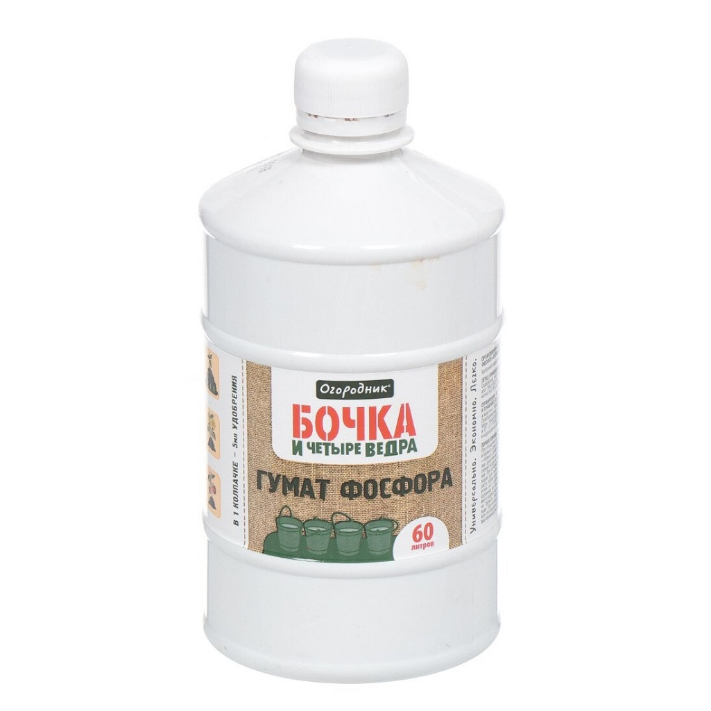 Удобрение Огородник Бочка и четыре ведра Гумат фосфора на 60 литров, 0.6 л