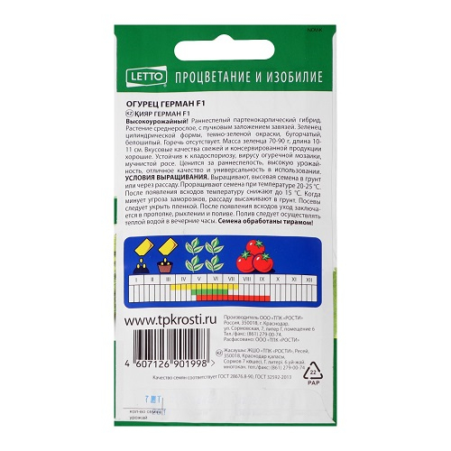 Технические характеристики огурцов Герман F1 Агроуспех