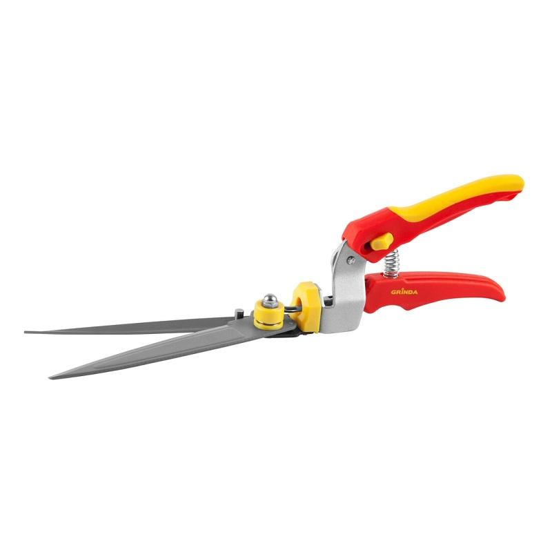 Ножницы Grinda 8-422015 используются для стрижки травы вдоль заборов, садовых дорожек, клумб. Головка поворачивается на 180 градусов относительно ручек, что позволяет работать в труднодоступных местах. Лезвия выполнены из высококачественной углеродистой стали, закалены и остро заточены. Тефлоновое покрытие лезвий предотвращает коррозию и препятствует налипанию грязи на лезвия. Рукоятки оснащены специальными пвх накладками, обеспечивающими более надежный хват. Фиксатор позволяет зафиксировать ножницы в закрытом cостоянии.