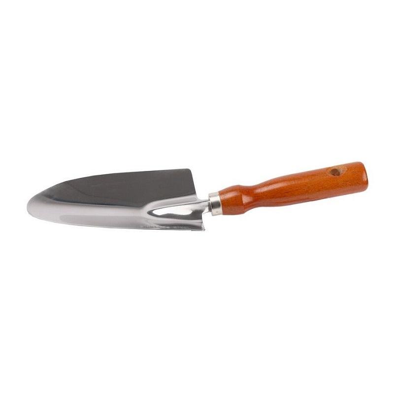 Посадочный совок Grinda 8-421111 позволит быстро и легко посадить растения в саду. Рабочая часть выполнена из высококачественной нержавеющей стали. Деревянная рукоятка эргономичной формы дополнительно отполирована и вскрыта лаком. В ней предусмотрено отверстие для подвешивания во время хранения.
