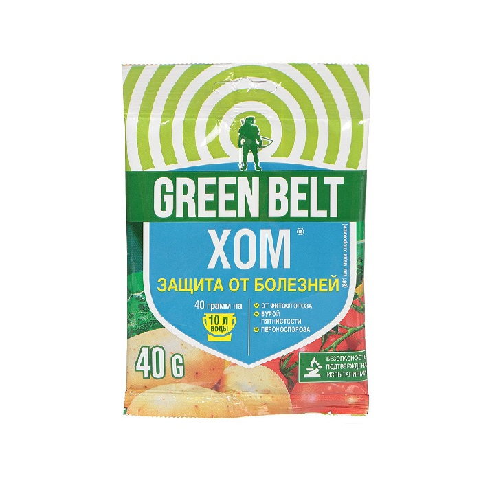 Хом - фунгицид контактного действия. Средство для борьбы с болезнями растений: паршой яблони и груши, фитофторозом картофеля и томатов, гнилью плодов сливы, курчавостью листьев персика, милдью винограда, пероноспорозом лука и огурцов, ржавчиной и пятнистостью декоративных и цветочных культур и возбудителями грибковых заболеваний.