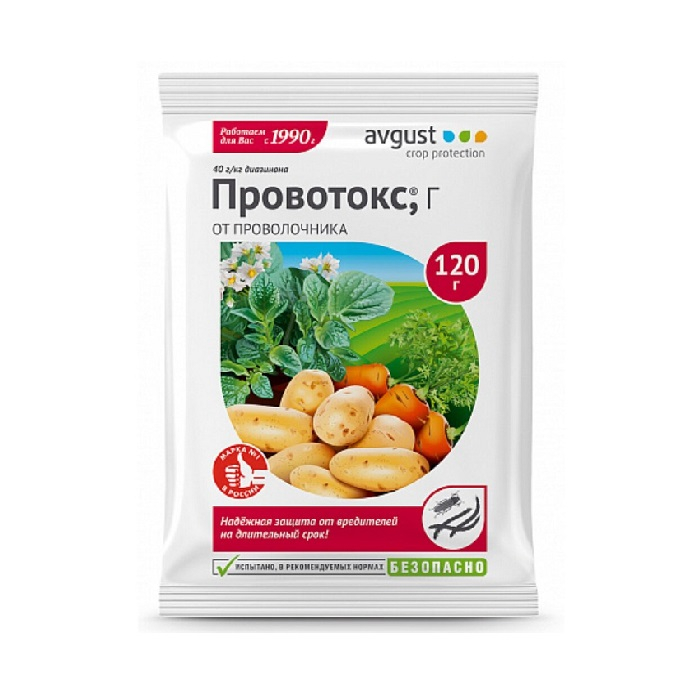 Инсектицид Провотокс - эффективный препарат для защиты от проволочника, обладающий контактно-кишечным механизмом действия и характеризующийся длительным периодом защитного действия. Он уничтожает личинок проволочника и снижает число поврежденных клубней. Не вызывает привыкания. Не токсичен для растений в рекомендуемых нормах расхода.
