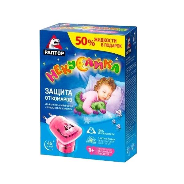 - Раптор Некусайка Комплект( жидкость от комаров для детей+ прибор на 45 ночей)