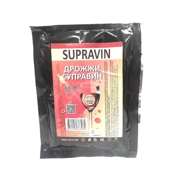 Дрожжи спиртовые Supravin 100 г - это сухие быстродействующие дрожжи, которые подходят для домашнего производства алкогольных напитков, они обеспечивают быстрое и эффективное брожение, обладают стабильной устойчивостью к высоким температурам, способны сбраживать до 14-16% алкоголя, что говорит о возможности получить брагу с высоким содержанием алкоголя, этим увеличите выход готового продукта.