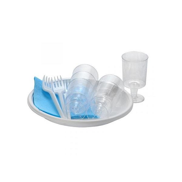 Набор одноразовой посуды на 6 персон, вилки, рюмки 100 мл, тарелки, салфетки.