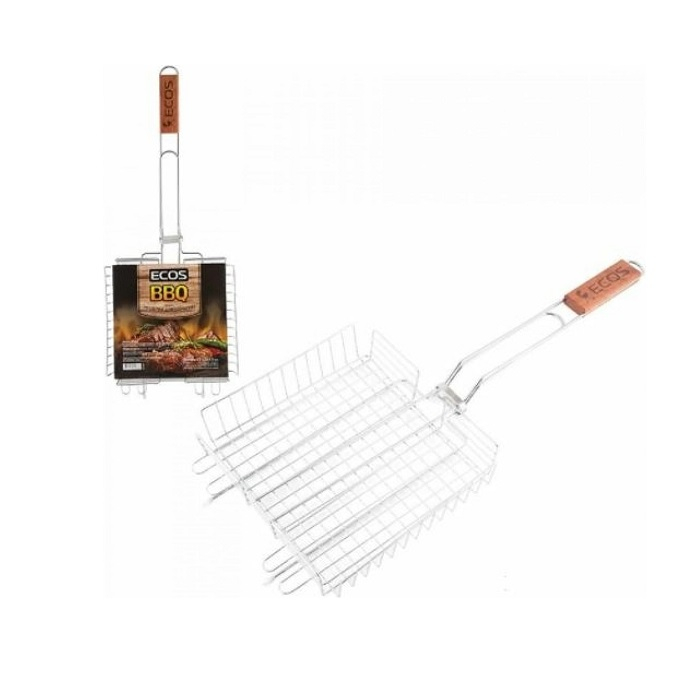 Глубокая решетка для барбекю Ecos 22001D подойдет для мяса, рыбы, овощей и т.д. Для удобства предусмотрена деревянная ручка, которая не даст соскользнуть с руки. Зажим прочно закрепит решетку, что бы еда не упала в костер.
