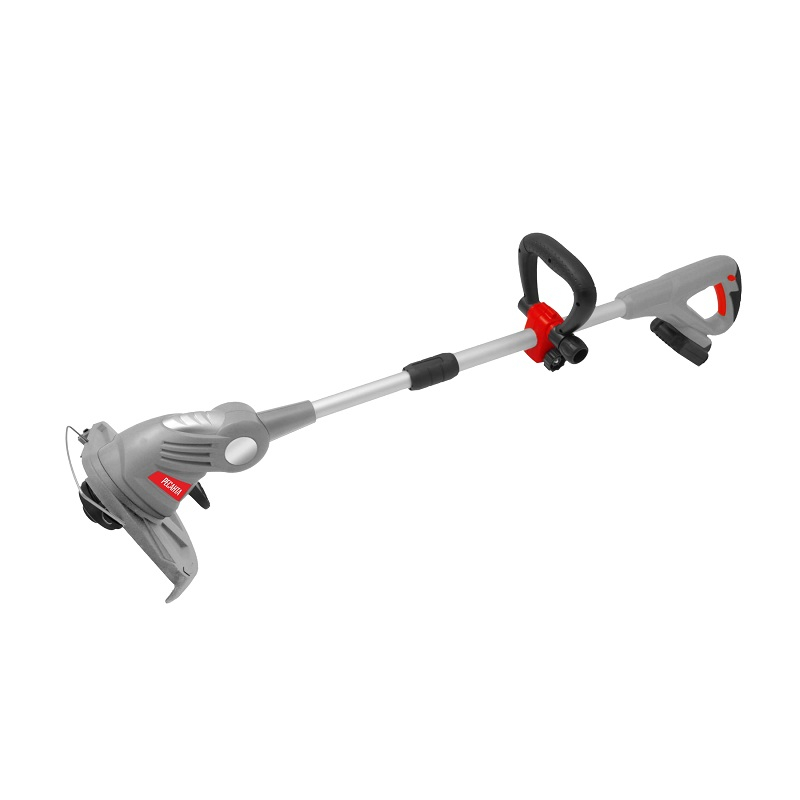 Также для удобства работы электротриммер снабжен перемещаемой рукояткой и раздвижной штангой. С их помощью оператор может настроить габариты устройства под свой рост. Для защиты оператора устройство снабжено пластиковым кожухом, закрывающим режущий элемент. Режущим элементом выступает леска толщиной 1,2 мм. Установка ножа не предусмотрена конструкцией триммера.